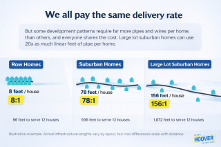 Low-density, spread-out development requires significantly more infrastructure per household. Once that infrastructure exists, utilities are obligated to maintain and replace it. Those costs do not stay isolated. They are spread across everyone who pays a bill.
